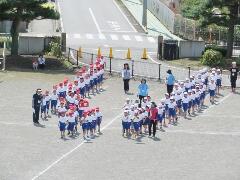 毎朝、職員と児童が協力して準備を進めています。職員は、7時過ぎから毎日ラインのj修正を行って、怪我のないようにグランドの状態も確かめています。