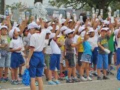 5年生も応援してくれて、1年生・2年生元気な応援でした。応援団員、ご苦労様でした。