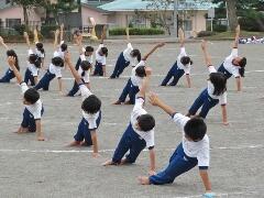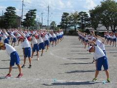 『高学年の練習は、毎回ラジオ体操から開始します。』