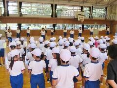 さくら警察署の方と勝山駐在所の方にご協力いただき、不審者対応の避難訓練を行いました。教師には「さすまた」の使い方、子どもたちには不審者と遭遇したときの対応などを詳しく説明していただきました。児童も職員も気持ちを引き締め、話に聞き入っていました。