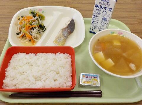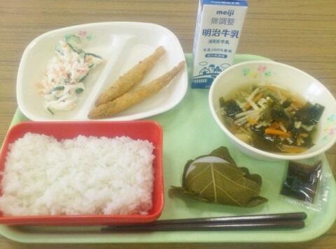 ししゃもフライ・わかたけ汁・帆立と大根のサラダ・柏餅 660kcal