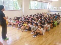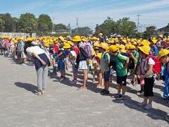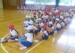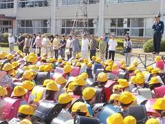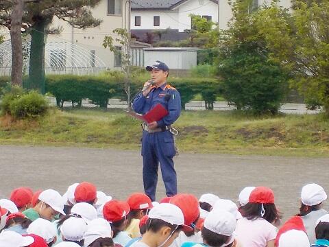 昨日、「氏家消防署」の方に来ていただき、避難訓練を実施いたしました。「火災が起きた時」「地震が起きたとき」など、様々な場面に応じた対処法を教えていただきました。また、消火器の使い方についても説明をいただき、教師が「水消化器」を使って火を消す訓練も行いました。