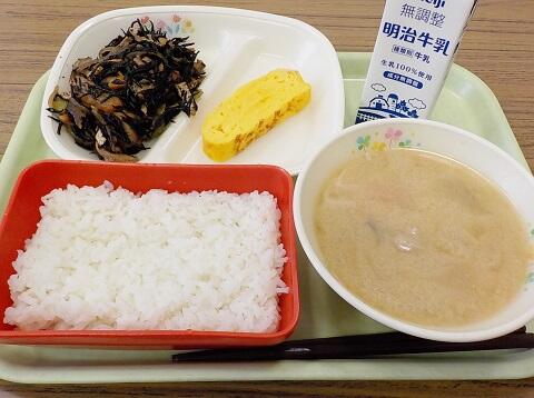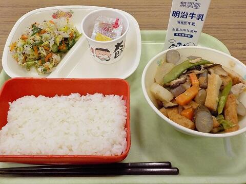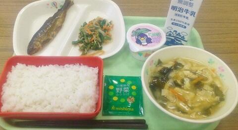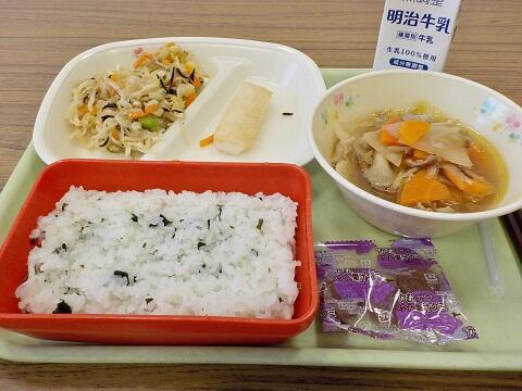 鮎の甘露煮・にらの和風和え・湯葉の味噌汁・野菜ふりかけ・県民のゼリー 693kcal