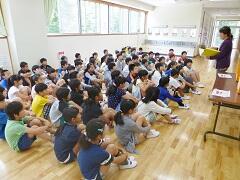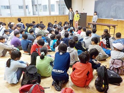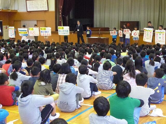 今朝、5年生は「臨時の学年朝会」を実施しました。塚原先生と小野里先生が、話の内容を分担して大切な話を伝えていたようです。5年生としての「こころ構え」のようです。下級生の模範として、登下校等にもリーダーとしての自覚を持って行動するようにと言うような内容かと・・・
