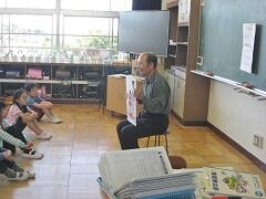 実は、教員に成り立ての時から、ずっーとお世話になっている大先生に「読み聞かせ」をしていただいています。学校図書館の「いろは・・・」から教えていただきました。まさか、南小学校でまたお世話になるとは・・・やはり、「出愛」は大切にしないと、再確認いたしました。遠慮深い方なの名前は言えませんが、「よろしくお願いいたします。文江先生!」