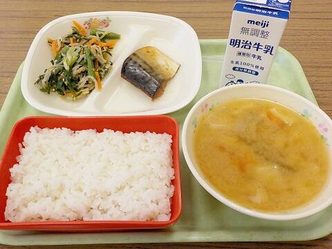 鯖の照り焼き・にらの和風和え・馬鈴薯の味噌汁 675kcal