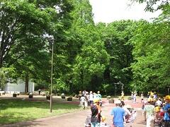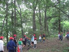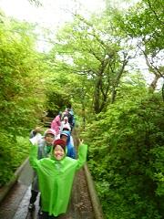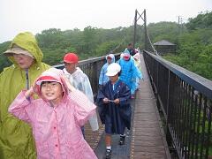 1日目、小雨がパラついていたおかげで活動内容が増え、「つつじ園レインウォーク」「館内オリエンテーリング」「ニュースポーツ」を楽しむことができました。