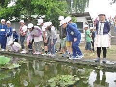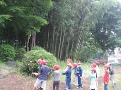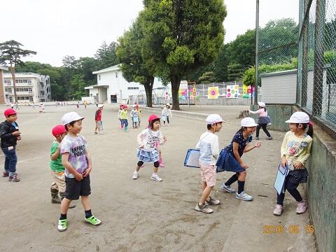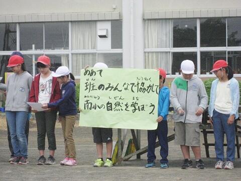 フィールドビンゴを行いました。「南小の自然を学ぼう」ということで、ビンゴカードの中には、南小にある樹木がたくさん入っていました。南小の校木『アカマツ」も入っていました。ビンゴカードにあるものを見つけたら、みんなそろって「みいつけた!」と言います。仲良く楽しく南小の自然と親しむことができたようです。 (担当:鈴木さ)