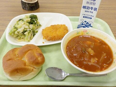 コーンコロッケ・グリーンサラダ・ブラウンシチュー 713kcal