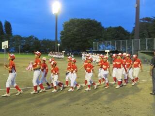 雷雨のため順延となったさくら市学童ナイター野球大会(市教委、市体育協会、市ロータリークラブ共催)が,8月20日(日)18:30に市総合公園野球場で開催されました。最後までやり通すことができた6年生にとって,現チームでの最後の大会です。6年生は,最後の大会にふさわしく、楽しく,真剣に試合を行っていました。改めて,指導スタッフや家族の皆さんもこれまで大変お疲れ様でした。