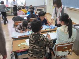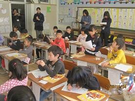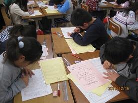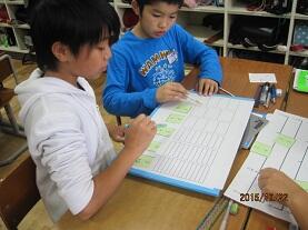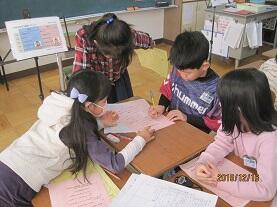 本時の活動では、児童が興味・関心を高める様な“学習のめあて”の提示や学習教材を工夫しながら、グループ活動など効果的な学習活動を取り入れ、展開などにも工夫をこらした授業が行われました。また、子ども達もノートやワークシートへの記述もしっかりと行いながら、自分の考えをまとめたり、終末の本時のまとめでも学習のめあてに対しての振り返りをきちんと臨んだりする姿も見られました。
