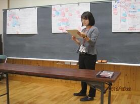 放課後に行われた授業研究会では、授業者の反省や班別の協議・発表などが行われ、今回の研究授業の振り返りがなされ、最後には教育事務所の鈴木課長さんや市教委の飯田指導主事からまとめの講評をいただきました。今までの研究授業・授業研究で得られた研究の成果や課題を今年度の研究のまとめで再確認し学校課題の研究のまとめとしていきたいと思います。