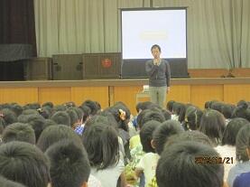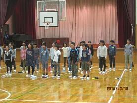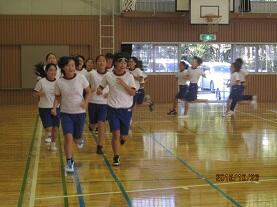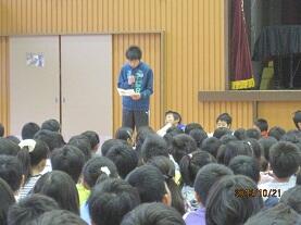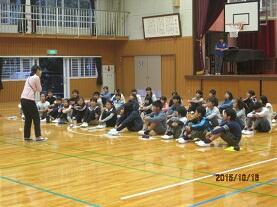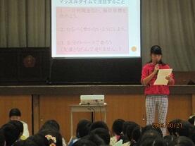 朝会では、運動委員会の活動の紹介と校内持久走大会に向けて予定されている“マッスルタイム”の説明など運動委員会からの啓発活動でした。