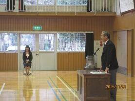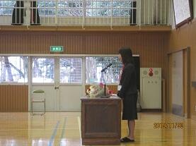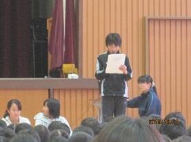 これから、インフルエンザが流行する時季を迎えます。是非、今日の保健委員会の発表を参考に、予防に努めていってほしいと思います。