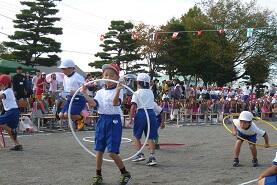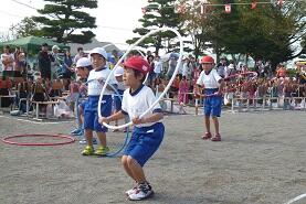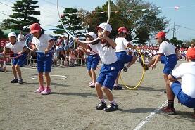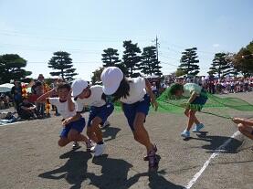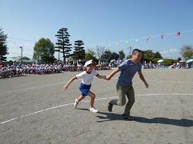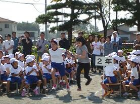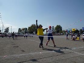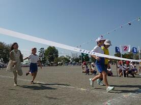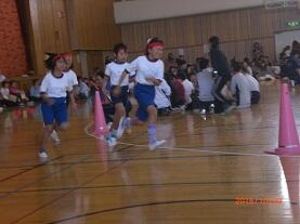 2年生は「とんでくぐってじゃんけんポン!」の障害走で、途中のじゃんけんが運命の分かれ道。かけ足があまり得意でない子も、じゃんけんで勝って1位でゴールできたと、とてもうれしそうでした。