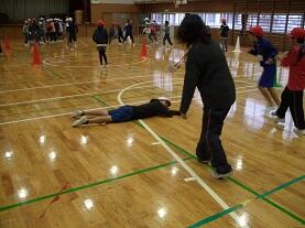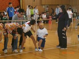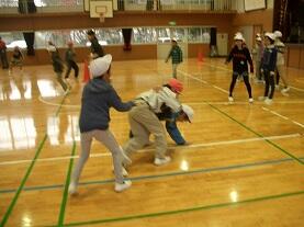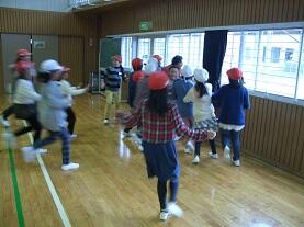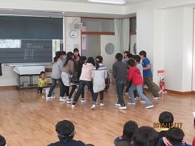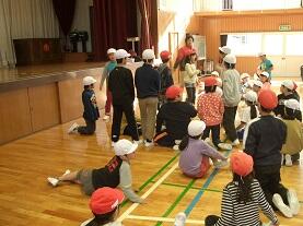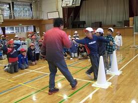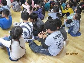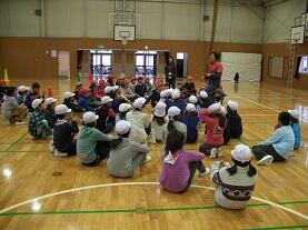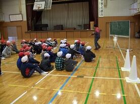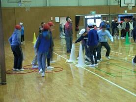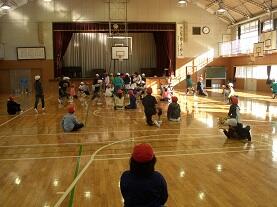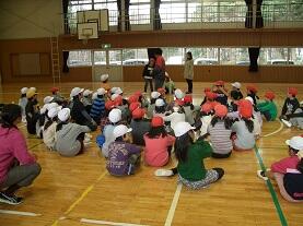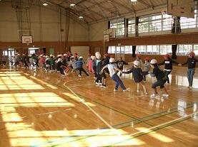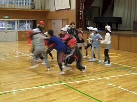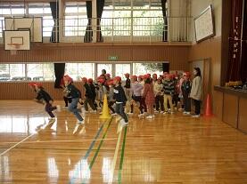 今回のプログラムは、「おうさん」を紅組・白組に分かれて行いました。今回は、白組の3連勝に終わりましたが、いかに積極的に攻め込むかによって勝敗が左右されるようです。子ども達は身体を思いきり動かし、体育館の中を大きい声を出しながら夢中で走り回り取組んでいました。