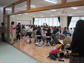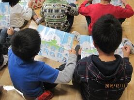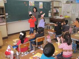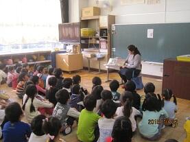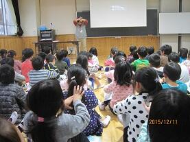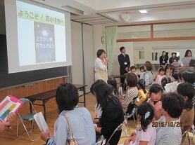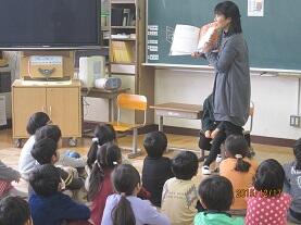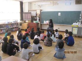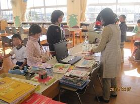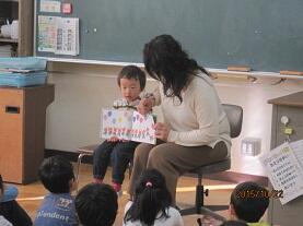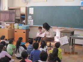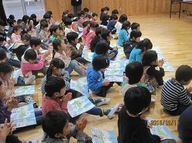 また、保護者の図書ボランティアの方の中には、小さなお子さん連れでのご協力ということで、絵本ページをめくるお母さんのお手伝いをしながら、一緒に読み聞かせに加わっていただきました。ご協力ありがとうございました。