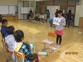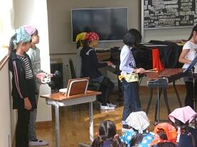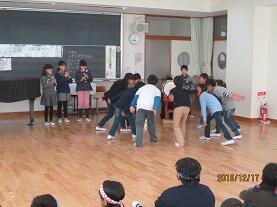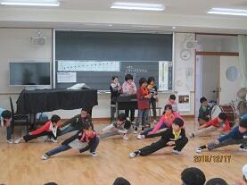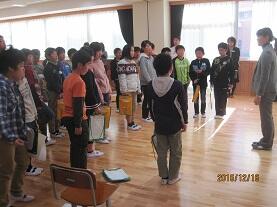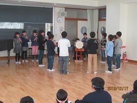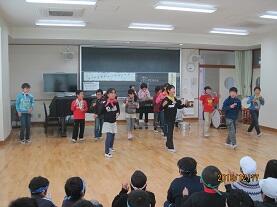 12月17日(木)5校時に、4年生の児童が音楽の学習で取り組んでいる「日本のお祭りをたずねて」のグループ発表に招待されました。運動会でも披露した「ソーランぶし」のリズムを工夫し、グループで創作したお囃子と踊りを発表しました。ねじり鉢巻きや元気いっぱいの掛け声に圧倒され、ランニングマンのダンスを取り入れるなどグループごとに工夫を凝らしたユニークな踊りも見られ感動しました。