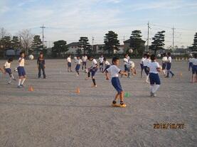 先生方が指導に当たりますが、スポーツ少年団活動で取り組んでいる6年生がリーダーとなり主体的に練習に取り組む様子が見られ、頼もしさも感じられました。クラブに所属していないメンバーもいますが、練習や大会を通して、心身を鍛え、心の交流を通して社会性も培いながら、心豊かな子どもたちの育成を目指したいと思います。