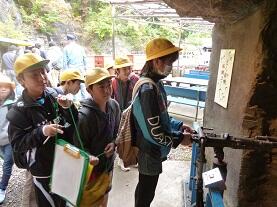 「足尾銅山観光」は、銅鉱石の採掘が江戸時代から昭和まで続き、400年の歴史を誇るもので、かつて“日本一の鉱都”と呼ばれ大いに栄えた足尾銅山の坑内観光施設です。施設では、トロッコ電車に乗って坑道に入っていくと、当時の辛く厳しい鉱石採掘の様子が年代ごとにリアルな人形で再現されていました。また、銅資料館などでは、鉱石から銅になるまでの過程などが展示されており、日本の近代化を支えた足尾銅山の歴史や役割を知り、環境問題や自然の大切さについて学びました。