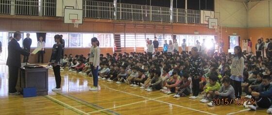 今朝は表彰朝会が行われ、各種大会・コンクールでの入賞者に学校長より表彰状が授与されました。また、冒頭には後期児童会活動の各委員会委員長の任命も行いました。