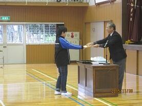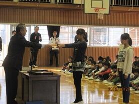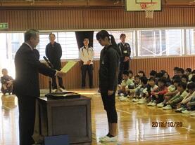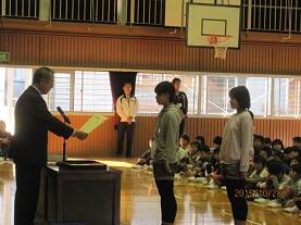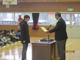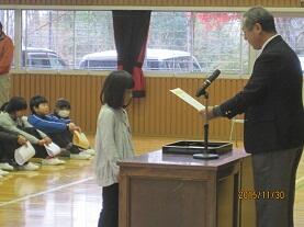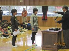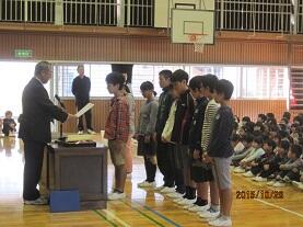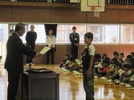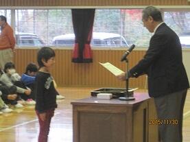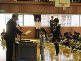今回の賞状の伝達は、文化面では“県料理コンクール”と先日の“地区音楽祭・県中央祭”での賞状と“地区読書感想文コンクール”と“なかがわ水遊園絵画コンクール”の賞状、スポーツ活動では“ミニバスケットボール交流大会”と“学童野球大会”の賞状を伝達し、皆で称賛しました。更に、前回にも読書関係で表彰しましたが“シリーズラリー”修了者が出ましたので、認定証を手交しました。