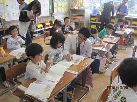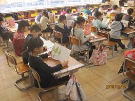 また、保護者の図書ボランティアの方には1・2年生の低学年向けに“絵本の読み聞かせ”を行っていただきました。子どもたちは楽しいお話に目を輝かせながら、絵本の世界に入っていました。
