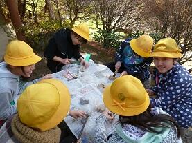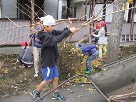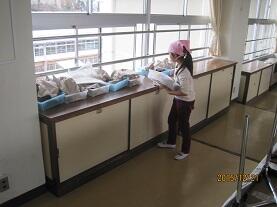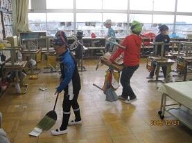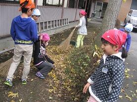 今の時期は水も冷たさを増し、ぞうきんをしぼるのもひと苦労ですが、トイレや流しなど、水を使う分担の子どもたちも、手を真っ赤にしながらみんなで協力してがんばっていました。また、外掃除も落ち葉掃きなど一生懸命取り組んでいました。