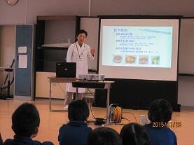 続いて、学校医の岡先生より「子どもの肥満」についてご講話いただきました。保護者からの質問に対しても、黒板を使いながら丁寧に説明してくださいました。肥満の予防には、生活習慣の改善が必要ということです。
