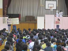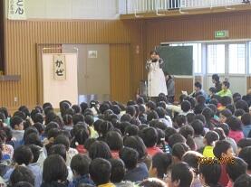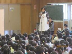 今朝は「民話の会」の皆さんと保護者のボランティアの方に来校いただき、朝の読書の時間に児童向けの読み聞かせを行いました。