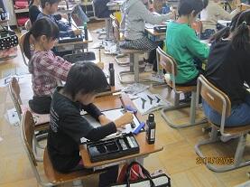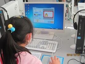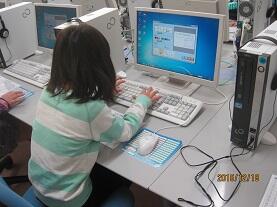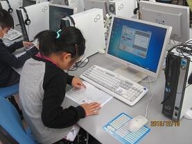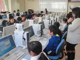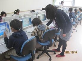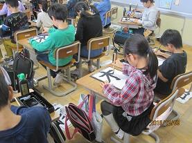 3年生は国語科の学習で“ローマ字”の学習が終わったということで、キーボードを使いローマ字や記号を入力してメッセージカードを作成します。今回は、季節に合せて「クリスマスカード」の作成を行いました。子ども達は、文字とデザインを組み合わせ、背景なども工夫して素敵なクリスマスカードづくりに挑戦しました。