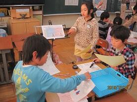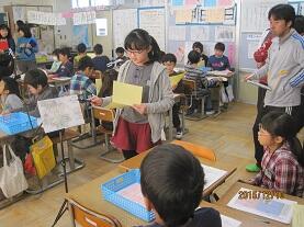 最後の学習の振り返りでは、“振り返りカード”への記入をとおして友達の良いところや次の学習への意欲などが記入され、全体での発表でも自分の考えをしっかりと伝えようとする児童の様子が見られました。