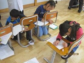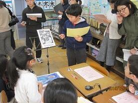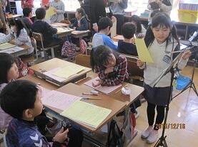 12月14日には、青木教諭による個人研修に基づく校内研究授業がありました。学校課題とも関連づけ、言語活動の充実を目指した研究テーマを設定しての国語科の研究授業でした。