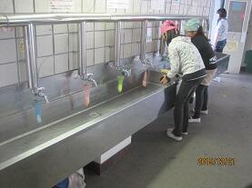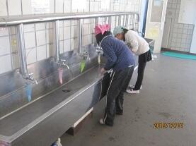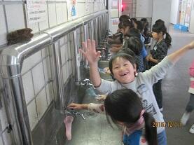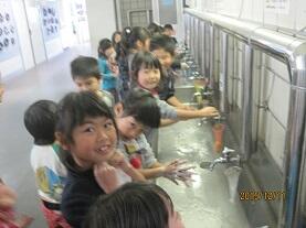 学習の後には、早速、学年の水道で手洗いを実行している子ども達が多数見られました。