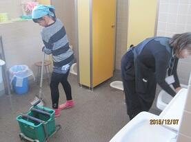 12月7日(月)、新しい清掃分担区に変わったタイミングで「清掃ボランティア(お掃除達人)」をお願いして、清掃活動への協力をいただきました。今回も、各トイレ清掃へのきめ細かなアドバイスをいただきながら、清掃の基本を意識しながら精一杯行いました。