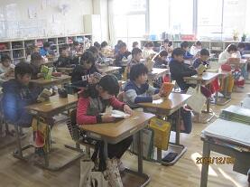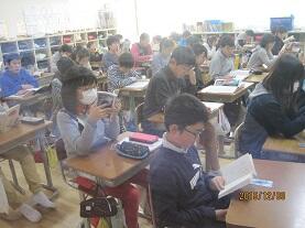 全国的な読書週間は1ヶ月ほど前に展開されていましたが、本校では、12月7日から12月11日までを「校内読書週間」として取り組んでいます。期間中、子ども達に読書を奨め、本に親しませたいということをねらって朝の活動は全て読書にし、本を読む時間を確保しています。