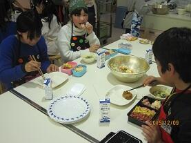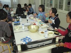 自分で考えた献立をもとに、「お弁当作り」が今回の学習内容でした。各グループとも協力をして安全や衛生に気を付けてお弁当を完成させていました。最後には、自分で用意した弁当箱に出来栄えを確認しながら、思い思いに盛り付けし(お弁当に詰めて)、皆でおいしくいただきました。
