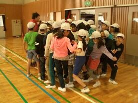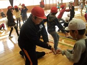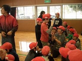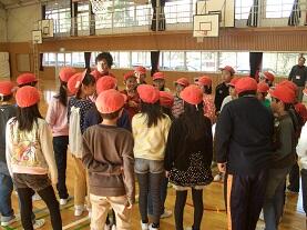 今回のプログラムは、「ドッカン」を紅組・白組に分かれて行いました。最初は、なかなかルールがのみ込めず、うまく勝敗が決まりませんでしたが、根無さんからアドバイスを受け、徐々にチームで作戦を立てながら進めていきました。子ども達は、身体を思いきり動かし大きい声を出しながら夢中で取組んでいました。