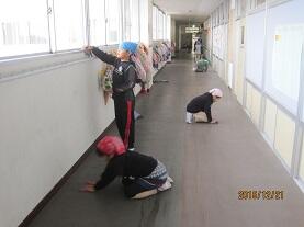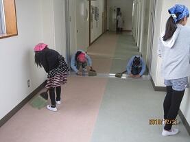冬を迎えて、水が冷たく感じられますが、子ども達はせっせと水ぞうきんを掛ける姿が見られました。