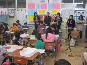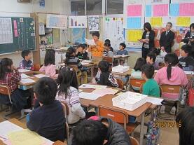 12月16日(水)2・3校時目に、学校課題に基づいての公開授業として、さくら市内の小中学校の先生方や塩谷南那須教育事務所と市教委から指導主事をお招きして、中学年ブロックでは3学年「塚原学級」の国語と高学年ブロックで5学年「榊原学級」の国語の研究授業を行いました。途中、岡田教育長さんもお忙しい中、参観にいらっしゃいました。