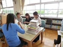 氏家図書館団体貸出の本を、返却する前に全部あるかチェックしていただいています・