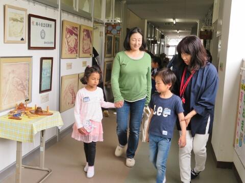 今日の「読み聞かせ先生」を、お迎えに来ます。「年組氏名。よろしくお願いします。」一年間、今年も南っ子のためにお世話になります。