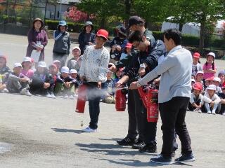 各学年から代表の先生と、委員会代表の児童が、消火訓練を行いました。とてもよい体験活動になりました。