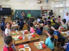ちょうど、給食の準備でした・・・さすが、テキパキしていました。
