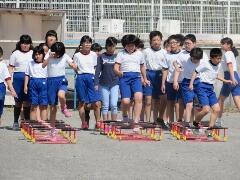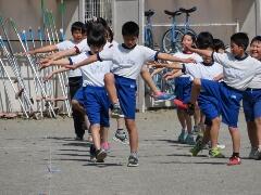 グループごとに、準備運動からスタートしています。リーダーを中心に、青空の下力一杯練習しています。今日も、さくら陸上クラブ(養徳園勤務)の鈴木真太郎様が指導に来てくださいました。ありがとうございます。