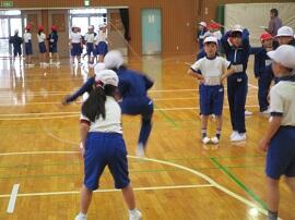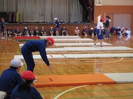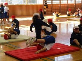1年生は縄跳びとマット運動、6年生もマット運動に取り組みました。