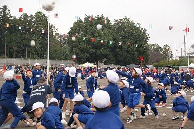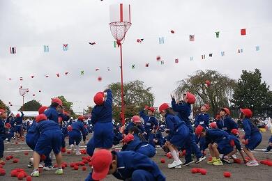 1・2年生の団体競技「ダンシングまり入れ」です。