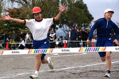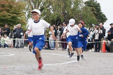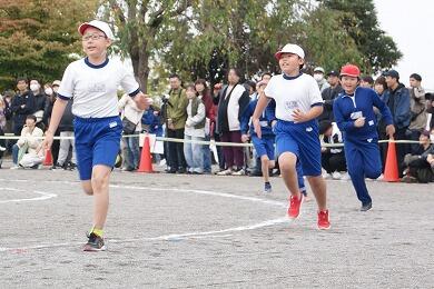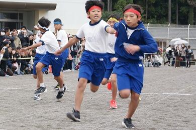運動会最後の種目、各学年の選抜選手による「紅白リレー」の様子です。
