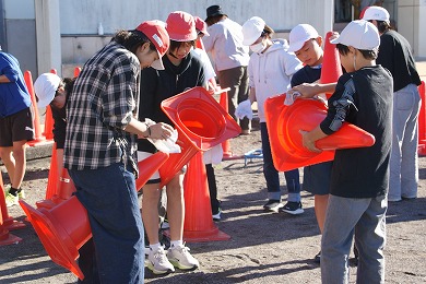 本日(10月28日)の朝は、6年生が運動会の後片付けを行っていました。