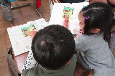 友達とたくさんお話をしながら、楽しく学習しました。自分のオリジナルのお話を作るのが楽しみです。